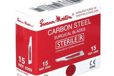 Liczba sztuk w kartonie: 100 Standardowe ostrza chirurgiczne ze stali węglowej . Ostrza o rozmiarach od 6 do 16 oraz 40 są kompatybilne z rękojeściami z serii nr 3.